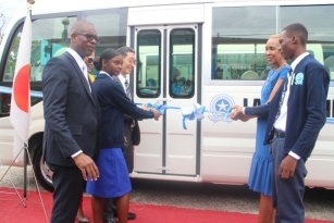 On January 20th, Ambassador Masaya Fujiwara and Mr. Ricardo Bennett, Principal of Lacovia High School, signed an agreement for a grant to purchase two coaster buses.