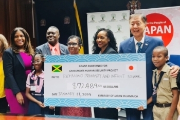 On January 11th, Ambassador Atsumi and Principal Mr. Sanderson signed an agreement for a grant to purchase one school bus for Richmond Primary and Infant School in St. Mary. The school will procure a bus to improve the reliability, safety and security need of all students and teachers in the South Eastern St. Mary region of the country.
