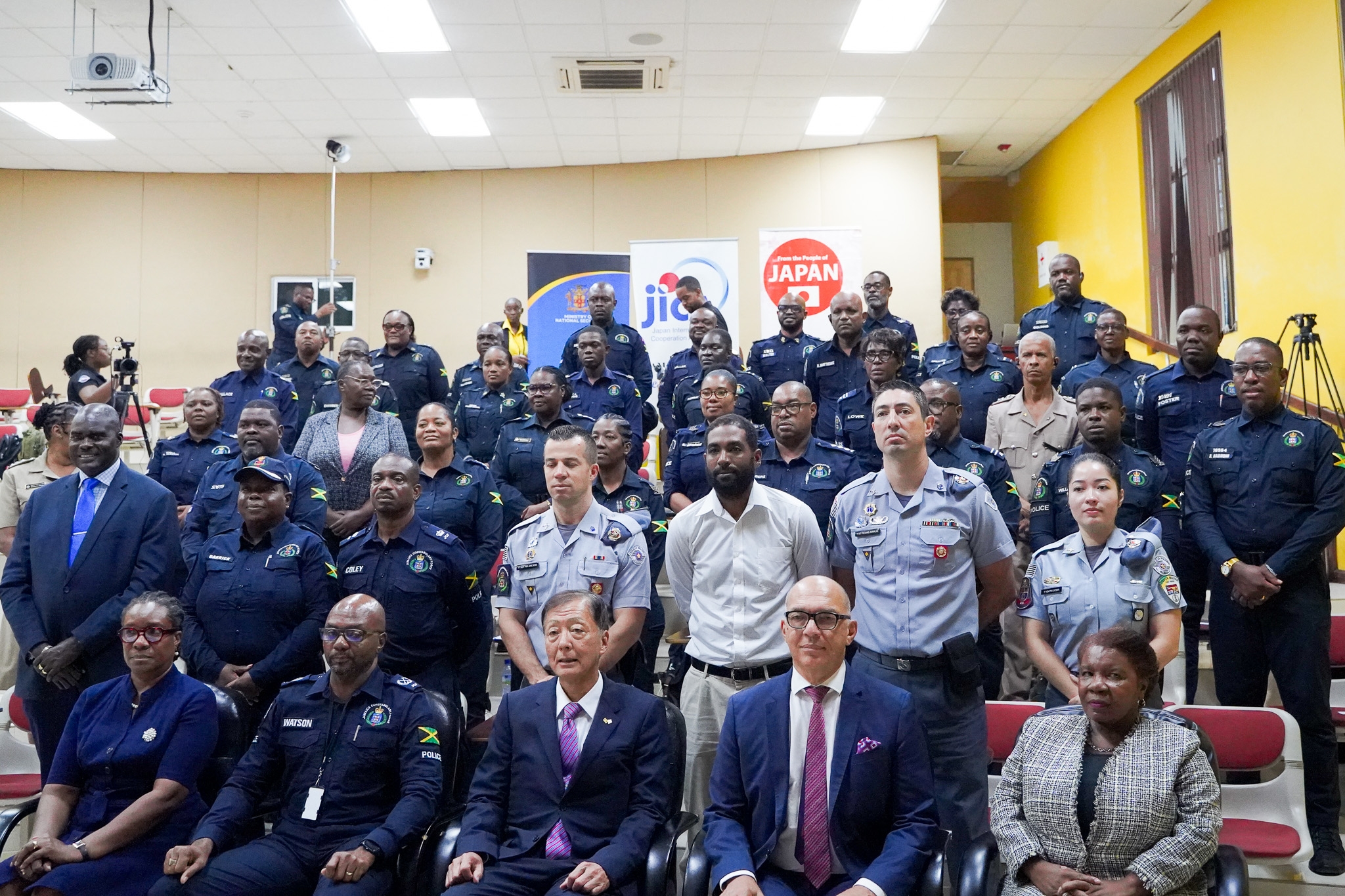 9月19日、渥美大使は、「地域警察活動普及に係る警察能力強化」プロジェクトの一環で行われた研修の閉会式に出席し、1週間の研修を修了したジャマイカ警察(JCF)所属の37名に対し、祝意を述べるとともに今後の活動への期待を表明しました。