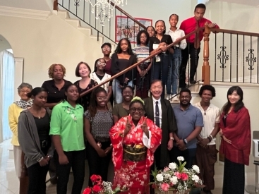 On 25 September 2025, Ambassador Atsumi invited students from UWI-Mona who are studying Japanese to his residence and exchanged views on the importance of studying the language through culture, including bonsai, Japanese flower arrangement, and Japanese tea ceremony.